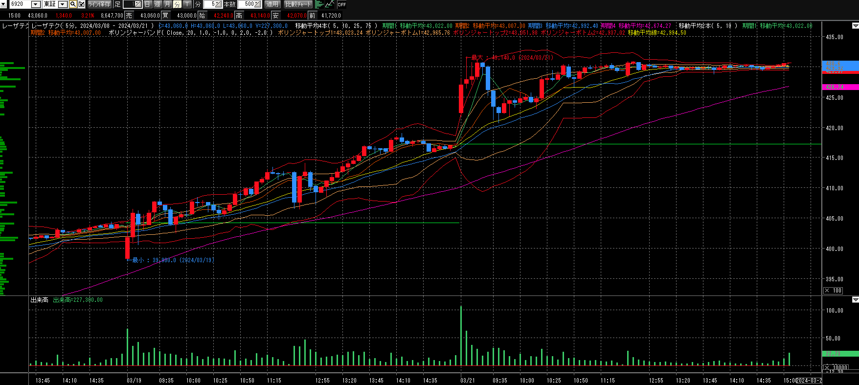 3/21 レーザーテック +1340円(+3.21%) 2024.03.21 目次 株価情報市場情報今回前回業種比較信用情報今回前回チャート分析1分足3分足5分足歩値指数、ドル円、10年債利回り、原油、その他まとめ 株価情報 市場情報 今回 前回 業種比較 今日の電気機器は8位にらんくいん! レーザーテックは値上がり率ランキングの26位にランクイン! 信用情報 今回 前回 チャート分析 1分足 3分足 5分足 歩値 歩値は9:00~9:15までです! 指数、ドル円、10年債利回り、原油、その他 まとめ また資金きてますな…